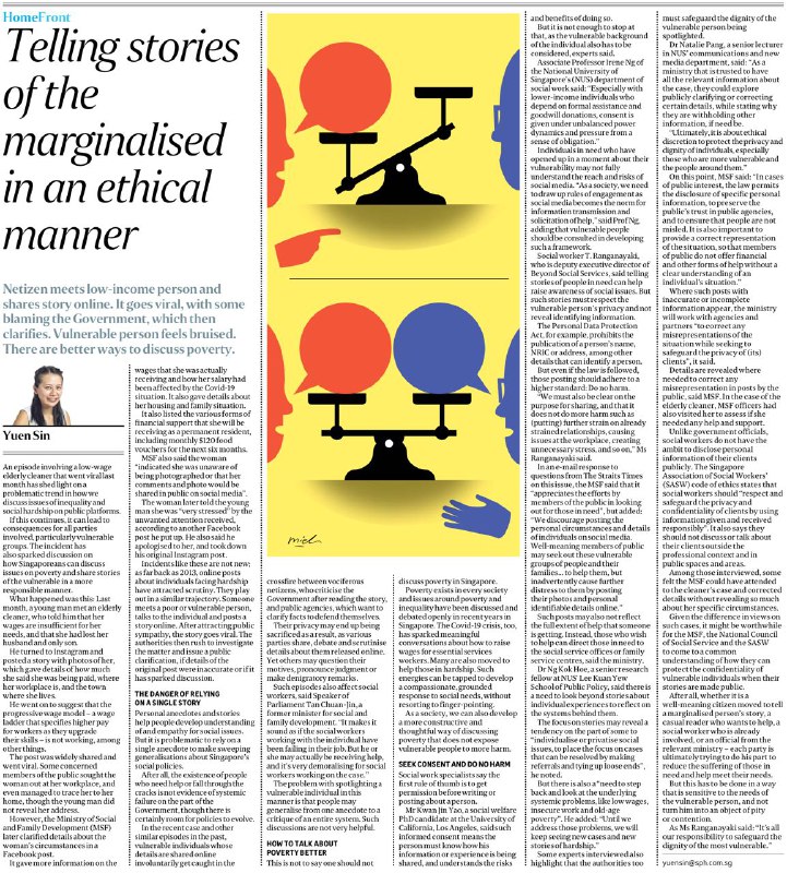 Telling stories of the marginalised in an ethical manner (The Straits Times, August 13, 2020)