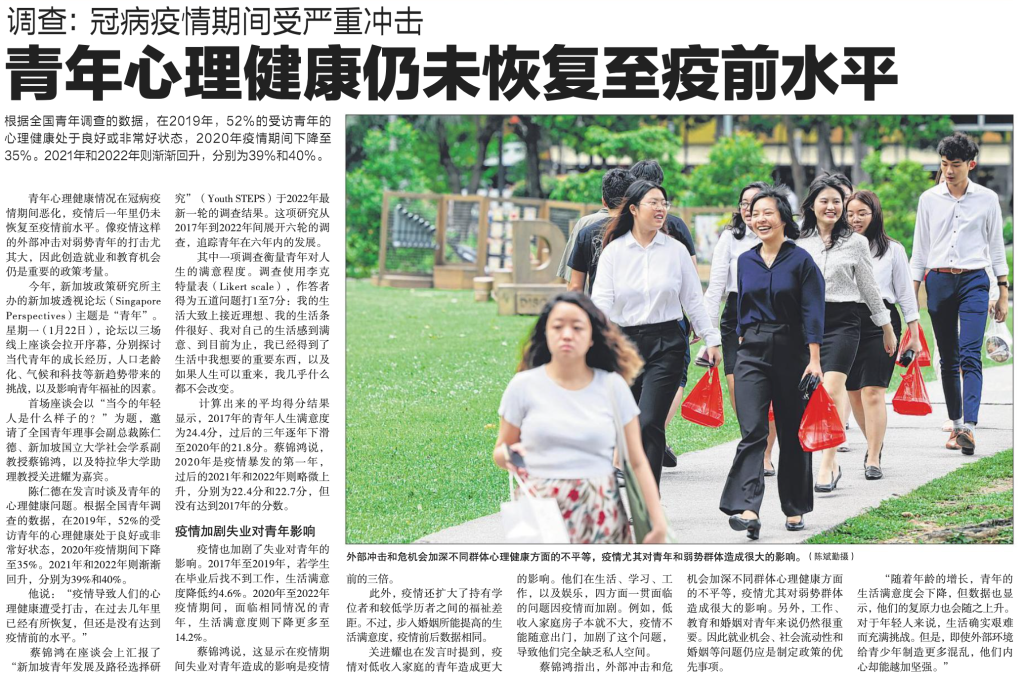 调查:本地青年心理健康疫情期间恶化 仍未恢复至疫前水平 (联合早报, January 23, 2024)