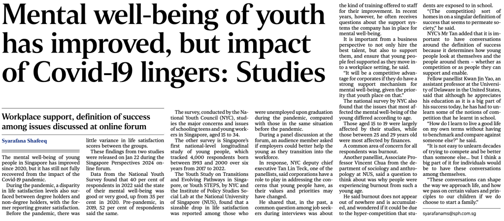 Mental well-being of young people improved but still suffers from pandemic impact: Studies (The Straits Times, January 23, 2024)